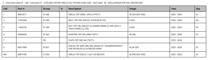 85051661 Grille Package, Replaces 86788545, 86813185