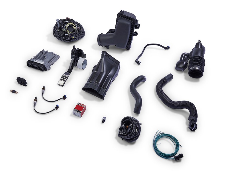 Next generation 5.0L power all in one complete powertrain kit. The crew at Ford Performance have spec'd out a kit to simplify the swap of the newest, most innovative 5.0L Coyote engine into just about any Ford vehicle. The Coyote Power Module teams the Gen 4X 5.0L Coyote V8 with a state-of-the-art Tremec 6-Speed transmission - and all the electronics and hardware to finish the installation. The engine features Direct and Port Fuel Injection, Twin Independent Variable Camshaft Timing, and a lightweight plasma transferred wire arc spray aluminum engine block. Coyote Power Module simplifies both the shopping and build experience by kitting up the right parts that are matched to deliver potent performance with civilized drivability. The engine Control Pack is truly plug and play and simplifies conversions to a modern electronically fuel injected V8 high performance engine.
