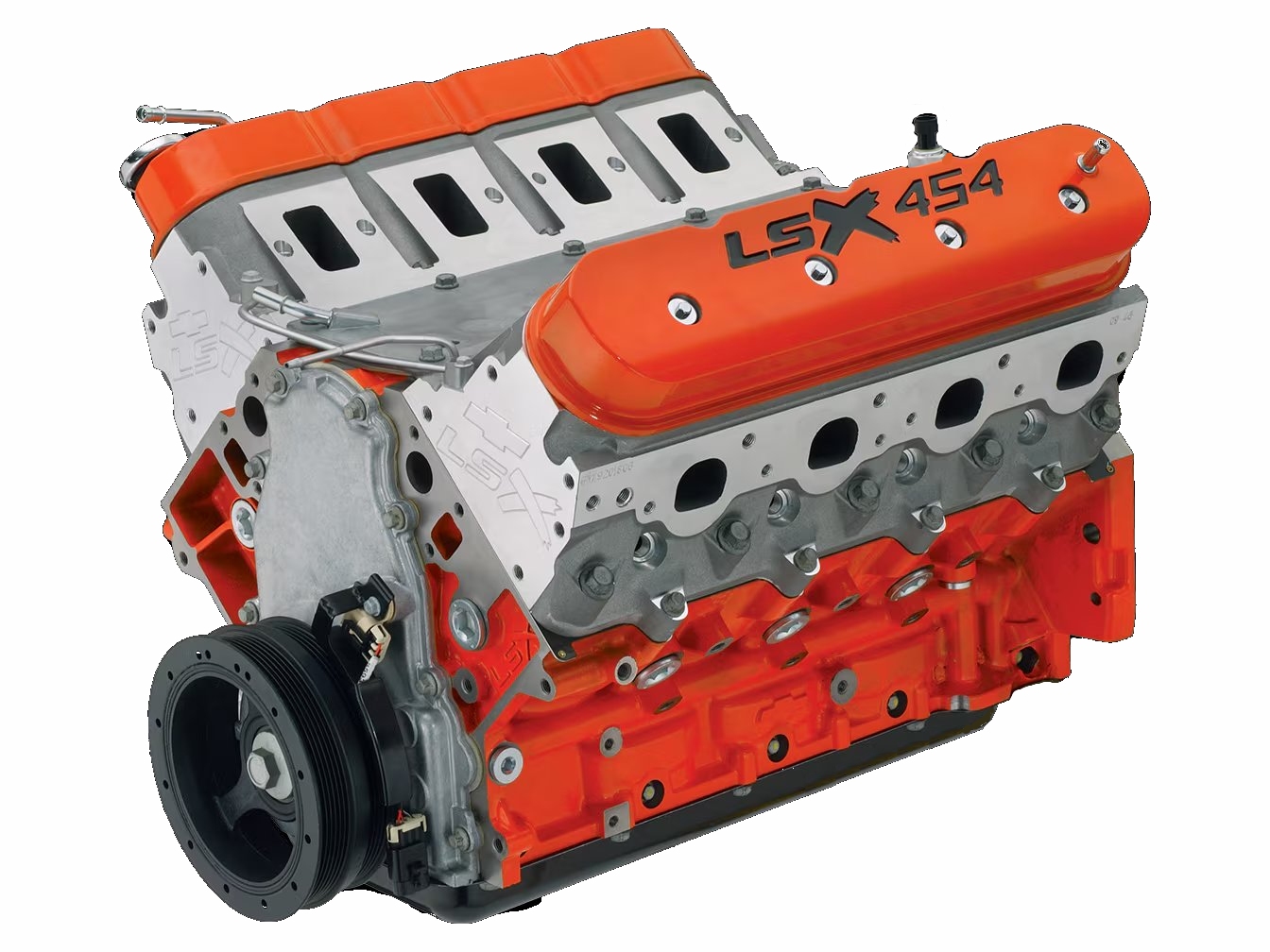 great-looking, orange powder-coated valve covers with engraved LSX454 logos.